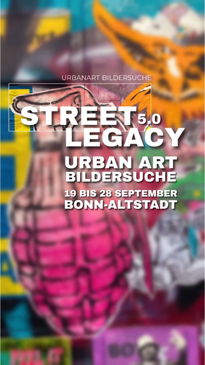 Zur STREET LEGACY 5.0 Vernissage am 19.September wartet in der Bonner Altstadt eine Open-Air-Ausstellung der besonderen Art, die Streetart-Bildersuche im öffentlichen Raum. Kleine Sticker,
